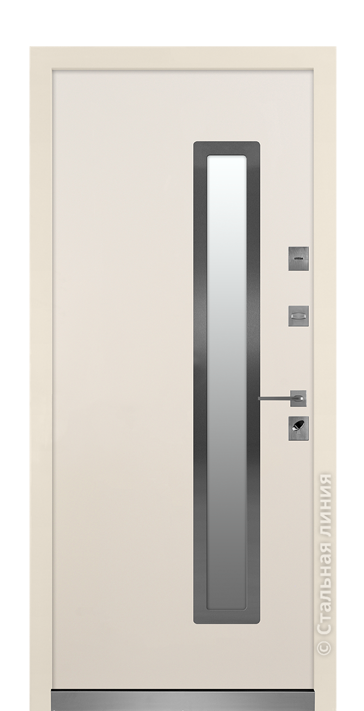 Модель «Алтея» — входная дверь в дом Серии 92УТ.Ручка Fuaro Flow: выполнена из материала ZAMAK — высококачественного сплава цветных металлов. Благодаря этому обеспечивается высокая прочность ручки, ее устойчивость к атмосферным воздействиям и механическим повреждениям.Актуальная форма: квадратная фурнитура подчеркивает геометрический рисунок входной двери, придает ей целостный и завершенный вид.2 терморазрыва в полотне и коробке: терморазрыв полотна исключает «мостики холода» в полотне и защищает дверь от промерзания, терморазрыв коробки изолирует внутреннюю сторону стальной коробки (теплую) от внешней (холодной).