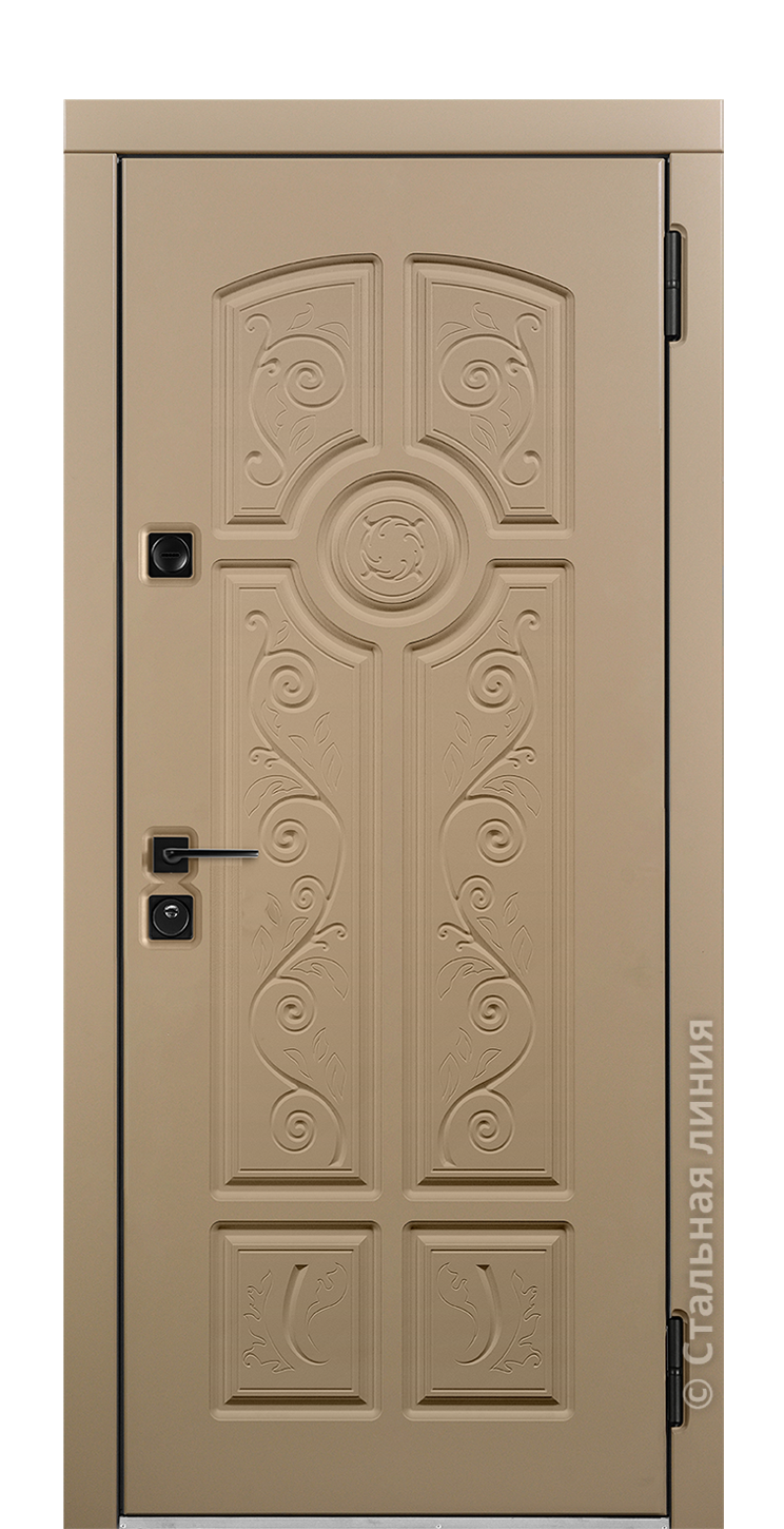 Модель «Эсфир» — входная дверь в дом Серии 94У.Отделка SteelLak®: фирменное покрытие с применением итальянских эмалей и лаков защищает дверную панель от атмосферных воздействий.Защита от промерзания: заниженные в дверном полотне ребра жесткости позволяют оторвать внутреннюю отделочную панель MDF от стальных ребер жесткости, затруднив прохождение холода по металлу.Ручка Fuaro Flow: выполнена из материала ZAMAK — высококачественного сплава цветных металлов. Благодаря этому обеспечивается высокая прочность ручки, ее устойчивость к атмосферным воздействиям и механическим повреждениям.