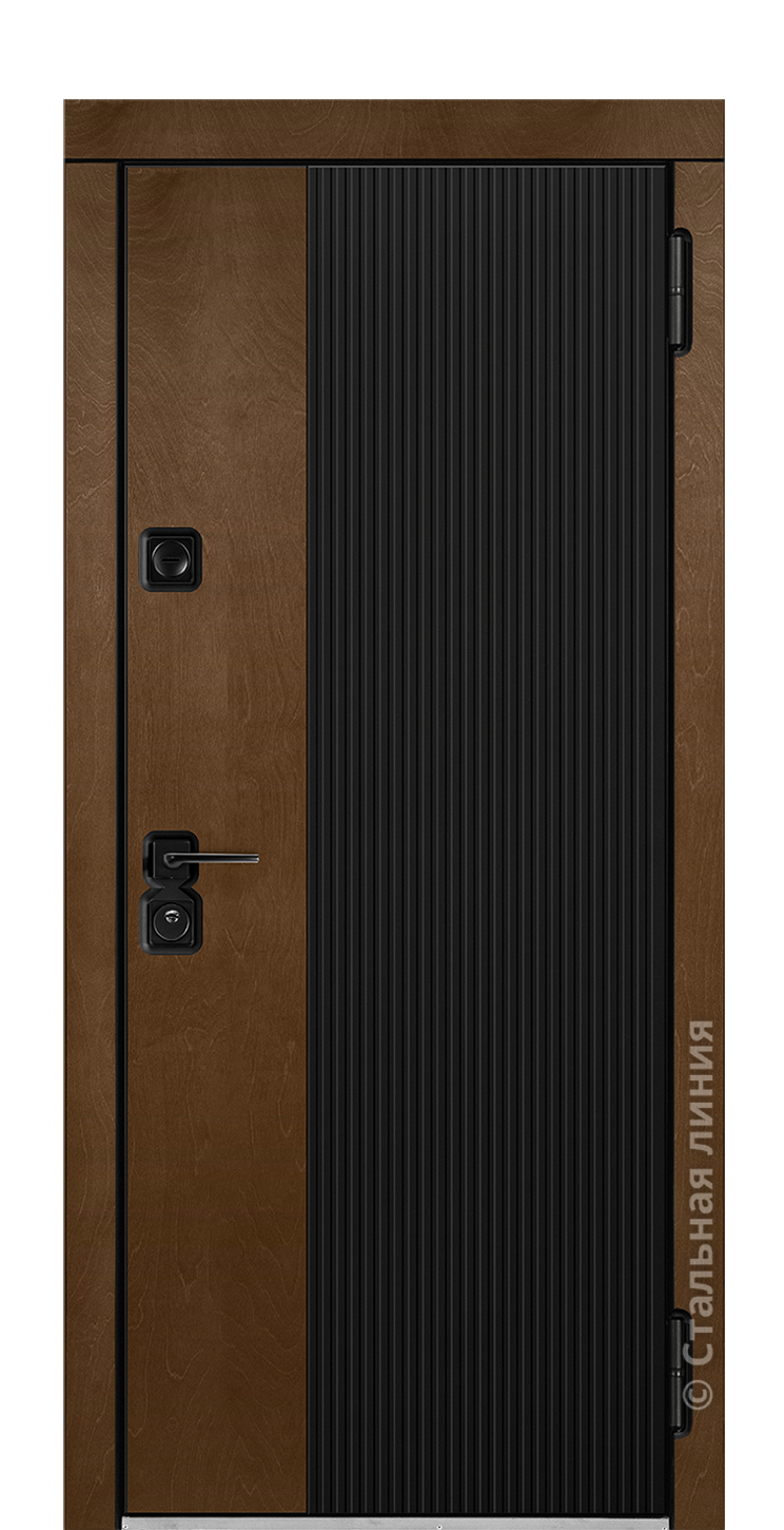Модель «Кобург» — входная дверь в квартиру Серии 94У.Защита от промерзания: заниженные в дверном полотне ребра жесткости позволяют оторвать внутреннюю отделочную панель MDF от стальных ребер жесткости, затруднив прохождение холода по металлу.Bjork Panel: панель из натурального дерева с верхним слоем из шпона березы. Устойчива к перепадам температур и повышенной влажности.Ручка Fuaro Flow: выполнена из материала ZAMAK — высококачественного сплава цветных металлов. Благодаря этому обеспечивается высокая прочность ручки, ее устойчивость к атмосферным воздействиям и механическим повреждениям.