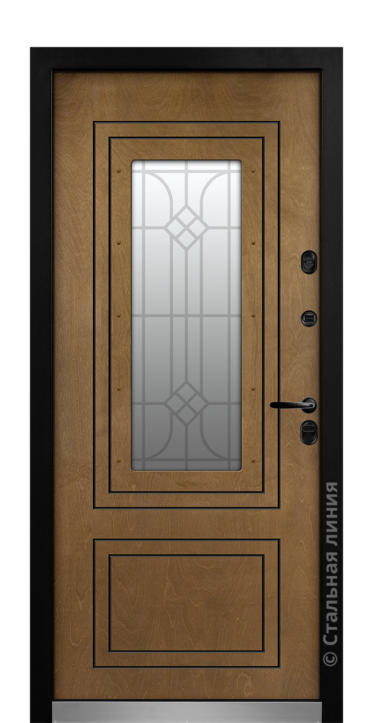 Модель «Монтэ» — входная дверь в дом Серии 100У.Улучшенная герметизация: 4 контура уплотнения до 2 раз лучше защищают от холодного воздуха, громкого шума и неприятных запахов (по сравнению с дверями с 2 контурами уплотнения).Защита от холода: уникальная безмолдинговая конструкция крепления внутренних панелей исключает «мостики холода» в полотне и защищает дверь от промерзания.Bjork Panel: панель из натурального дерева с верхним слоем из шпона березы. Устойчива к перепадам температур и повышенной влажности.