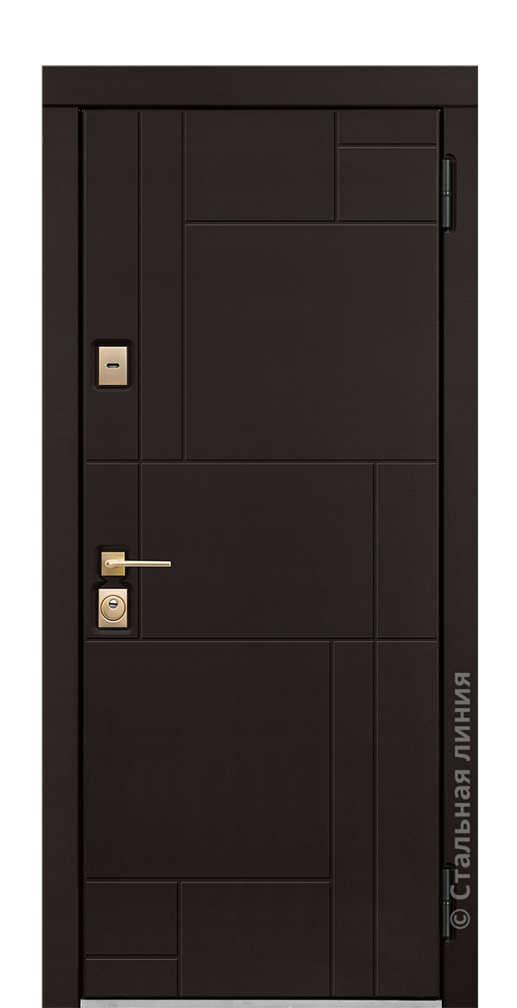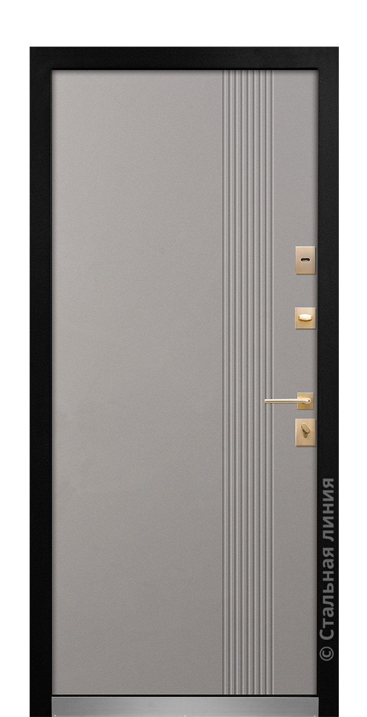 Модель «Профи» — входная дверь в дом Серии 100У.Отделка SteelLak®: фирменное покрытие с применением итальянских эмалей и лаков защищает дверную панель от атмосферных воздействий.Дополнительная защита от промерзания: инновационная безмолдинговая конструкция крепления полотна исключает «мостики холода» в полотне и защищает дверь от промерзания. В коробке предусмотрен терморазрыв, который изолирует внутреннюю сторону стальной коробки (теплую) от внешней (холодной).Ручка Fuaro Flow: выполнена из материала ZAMAK — высококачественного сплава цветных металлов. Благодаря этому обеспечивается высокая прочность ручки, ее устойчивость к атмосферным воздействиям и механическим повреждениям.