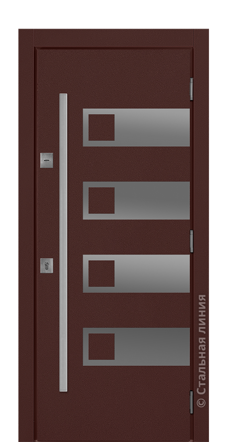 Модель «Рандерс» — входная дверь в дом Хаски B.Сохраняет тепло: коробка усилена клееным брусом, который сохраняет тепло в 5 раз лучше, чем кирпич. Такая дверь имеет низкую теплопроводность и защищает дом от холода.Улучшенная конструкция: полотно и коробка усилены термобрусом. Специальная технологическая обработка обеспечивает стойкость бруса к повышенной влажности и перепадам температур.Ручка Fuaro Flow: выполнена из материала ZAMAK — высококачественного сплава цветных металлов. Благодаря этому обеспечивается высокая прочность ручки, ее устойчивость к атмосферным воздействиям и механическим повреждениям.