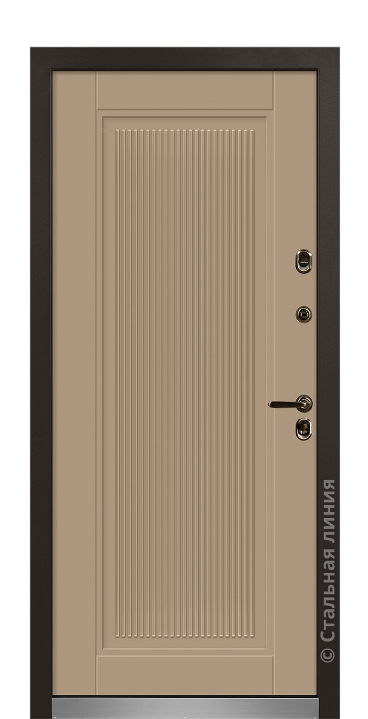 Модель «Толсон» — входная дверь в дом Серии 100У.Дополнительная защита от промерзания: инновационная безмолдинговая конструкция крепления полотна исключает «мостики холода» в полотне и защищает дверь от промерзания. В коробке предусмотрен терморазрыв, который изолирует внутреннюю сторону стальной коробки (теплую) от внешней (холодной).Отделка SteelLak®: фирменное покрытие с применением итальянских эмалей и лаков защищает дверную панель от атмосферных воздействий.Apecs: ручка из сплава алюминия, цинка, меди с защитным гальваническим покрытием. Благодаря износостойкому покрытию ручка надолго сохранит привлекательный вид, а инновационный механизм обеспечивает надежную работу и удобство эксплуатации.