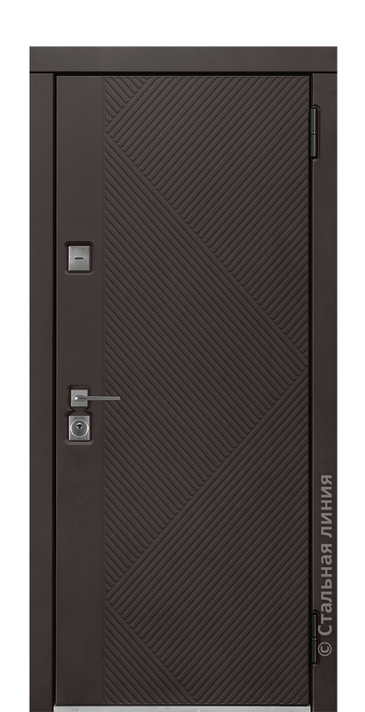 Модель «Волкер» — входная дверь в дом Серии 94У.Отделка SteelLak®: фирменное покрытие с применением итальянских эмалей и лаков защищает дверную панель от атмосферных воздействий.Фрезеровка: лаконичный рисунок выглядит легко и хорошо смотрится как в спокойных пастельных, так и в глубоких насыщенных тонах.Защита от промерзания: заниженные в дверном полотне ребра жесткости позволяют оторвать внутреннюю отделочную панель MDF от стальных ребер жесткости, затруднив прохождение холода по металлу.