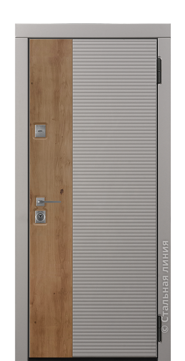 Модель «Гротто» — входная дверь в квартиру Серии 100.Шумоизоляция 40 дБ: два слоя минеральной ваты Knauf зафиксированы по всей высоте полотна по технологии SteelFix. Благодаря этому утеплитель не оседает и дверь сохраняет свои шумоизоляционные свойства на протяжении всего срока эксплуатации.Система герметизации: в двери применяются 4 контура герметичного уплотнения, которые до двух раз лучше защищают от посторонних запахов и шума (по сравнению с дверями с двумя контурами уплотнения).Экошпон Premium: активная фактура покрытия имитирует ценные породы дерева и поможет создать атмосферу тепла и уюта. Обладает повышенной стойкостью к царапинам и сохраняет безупречный вид двери весь срок эксплуатации.